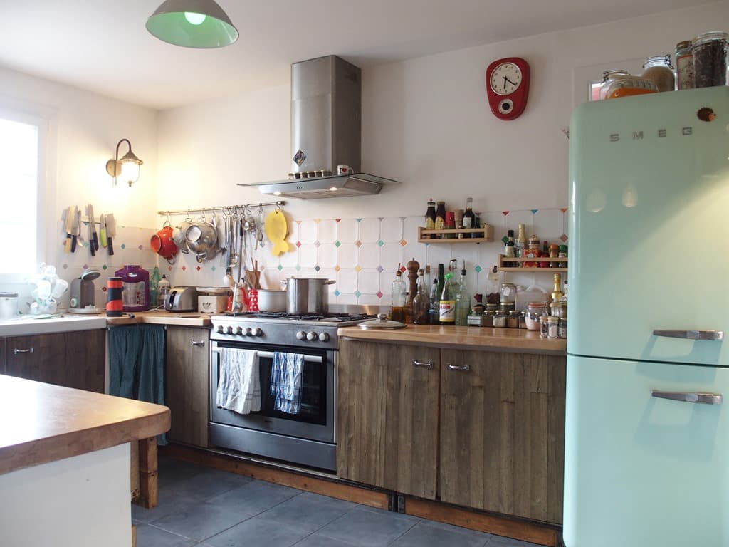 La totalité de leurs meubles a également été chinée sur ce site, dans les entrepôts Emmaüs, ou dans les vide-greniers… puis customisés par Jennifer. Leur réfrigérateur aussi, très design, a été acheté d’occasion auprès d’un particulier qui n’aimait plus sa couleur 2 ans seulement après l’avoir acheté.
