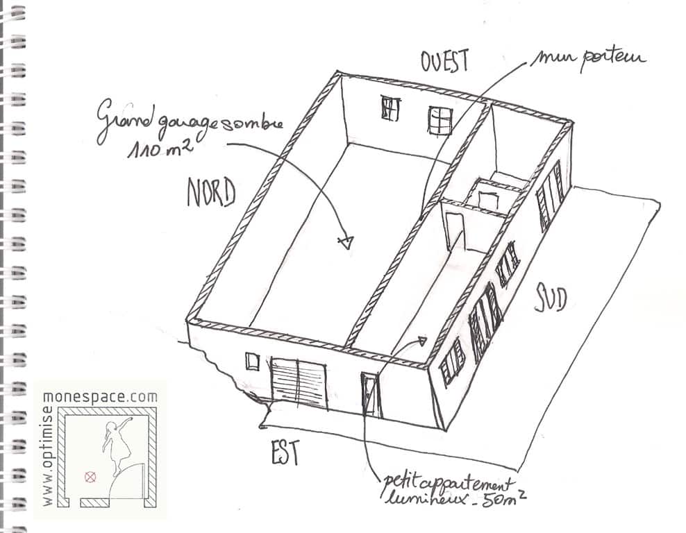 La maison était immense. Construite sur un terrain en pente, l’habitation principale était prévue sur deux étages. Mais, profitant de l’espace existant sous la maison à cause de la pente du terrain, les anciens propriétaires avaient prévu, sous leur maison, un garage d’environ 110 m² et un petit appartement d’environ 50m², donnant sur le jardin. C’est cette surface sous la maison, que Jennifer et Antony ont acheté pour seulement 125 000 €.