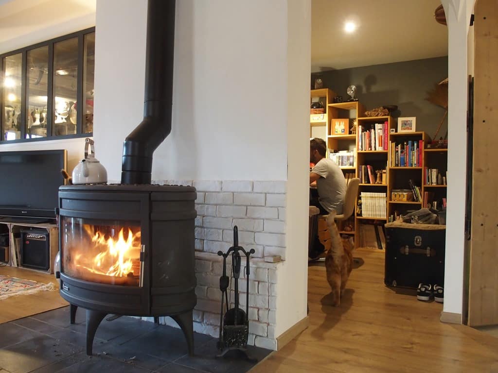 Evidemment, c’est une des conditions de base. En plus de s’être lancés dans ce défi en parfaits amateurs, Jennifer et Anthony n’ont pas hésité à vivre au milieu du chantier, pour économiser les frais d’un loyer en parallèle. Ils sont arrivés en plein hiver, la maison n’étant pas encore isolée, à peine le poêle à bois installé. Il n’y avait pas encore de cuisine, et la baie vitrée principale n’est arrivée qu’au printemps ! Les premiers mois ont été très difficiles. Mais le jeu en valait la chandelle.