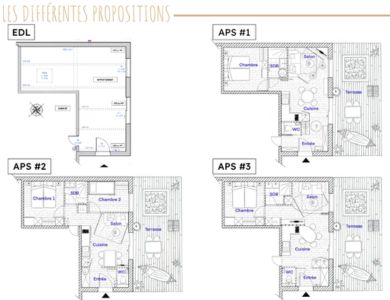 Proposer au client 3 “Avant-Projets Sommaires” (APS) ou propositions spatiales d’aménagement intérieur (surfaces, volumes, fonctions, ergonomie) afin de lui permettre de choisir une solution en conscience de tout le potentiel de son logement.