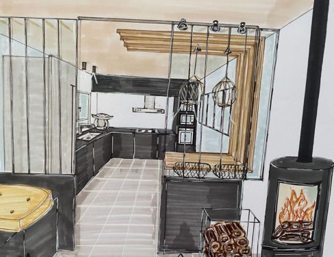 Vous passer d’informatique pour l’étude de votre projet, de A à Z ! … et retrouver le plaisir du simple papier-crayon … (chiche ?) Rester FOCUS sur l’apprentissage de l’intelligence de conception, et apprendre à dessiner une perspective simple et décomplexée pour faire comprendre rapidement le projet à vos clients.