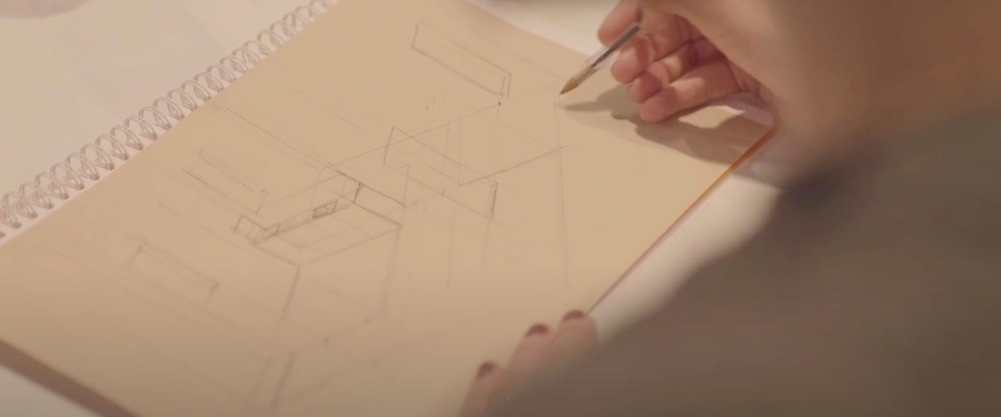 Pour Julie, architecte d’intérieur formée à l’Ecole H.O.M.E. et certifiée HOMER, l’Atelier HOME a été l’occasion de redécouvrir un outil qu’elle appréciait enfant : le CRAYON et la table à dessins.