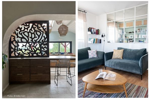 - Une cloison en claustra ou une verrière intérieure permet de délimiter tout en laissant passer la lumière naturelle.