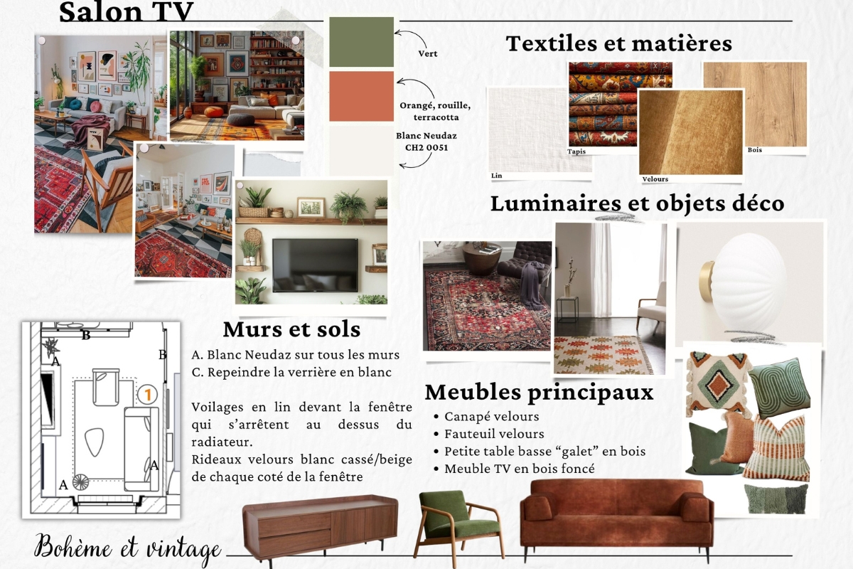 ✔ Salon et coin TV réorganisés sans cloisonner.